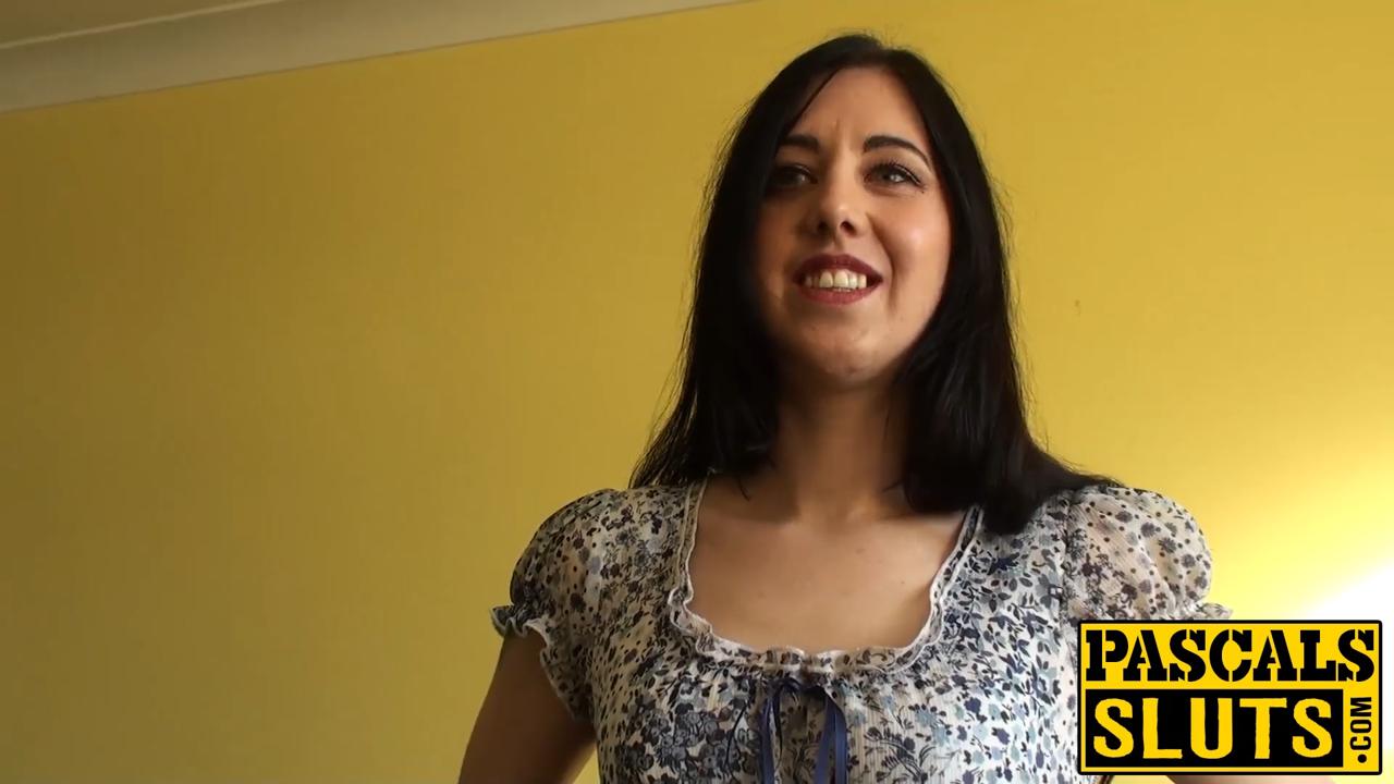 Submissive UK babe Honesty takes a pounding from hunk Pascal. She sucks his big dick and rides him in cowgirl and missionary positions. He dominates her, making her eat his raw cum while he spanks her bare bottom.