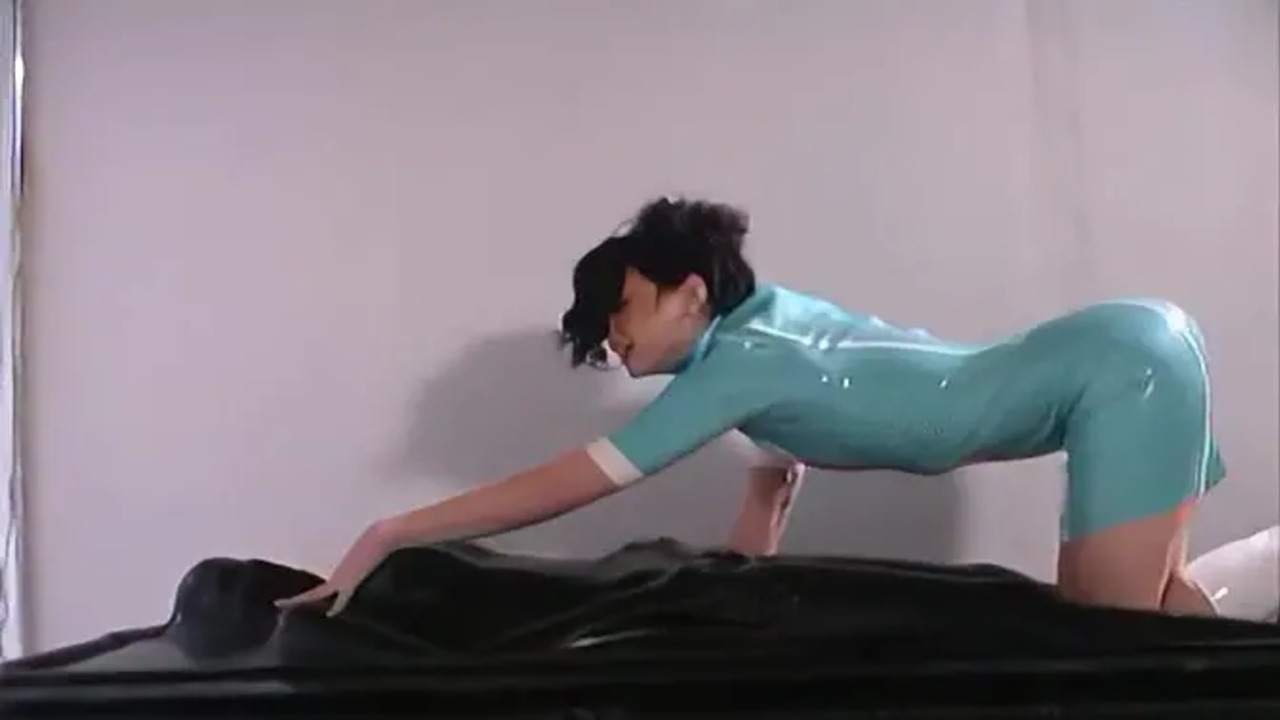 Latex-clad nurse vacuums man's cock in sexy vacbed scene