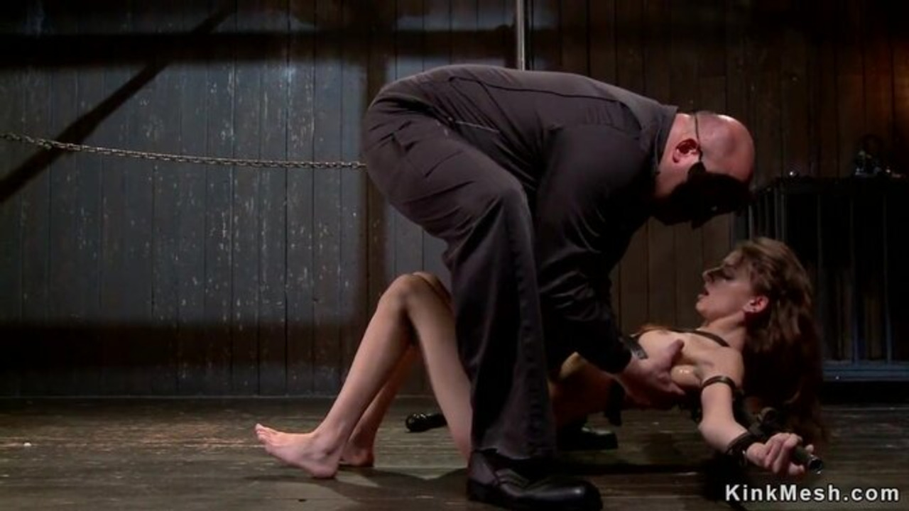 A kinky master dominates a hairy, skinny brunette slave in a dark dungeon. She's gagged and made to endure an intense ass whipping while her pussy is vibrated by a nasty device. The pain continues as she's bound in bondage, revealing the strange and bizarre world of kinkmesh.